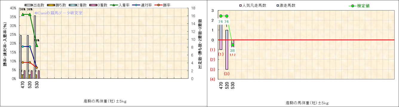 牡産駒の体重別成績-近3年- |