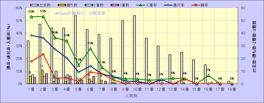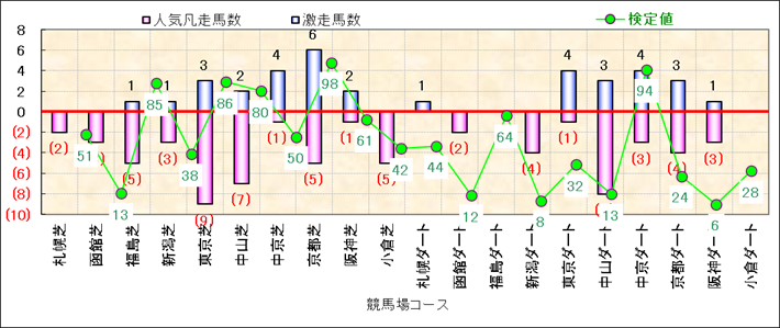 人気凡走馬:1-3番人気で着外、激走馬:5-18番人気で入着 |