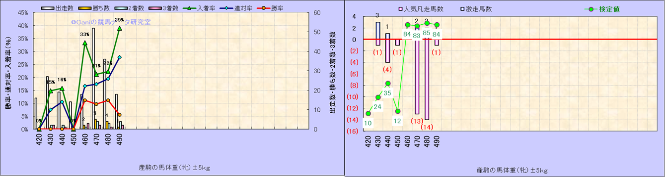 牡産駒の体重別成績-近3年- |