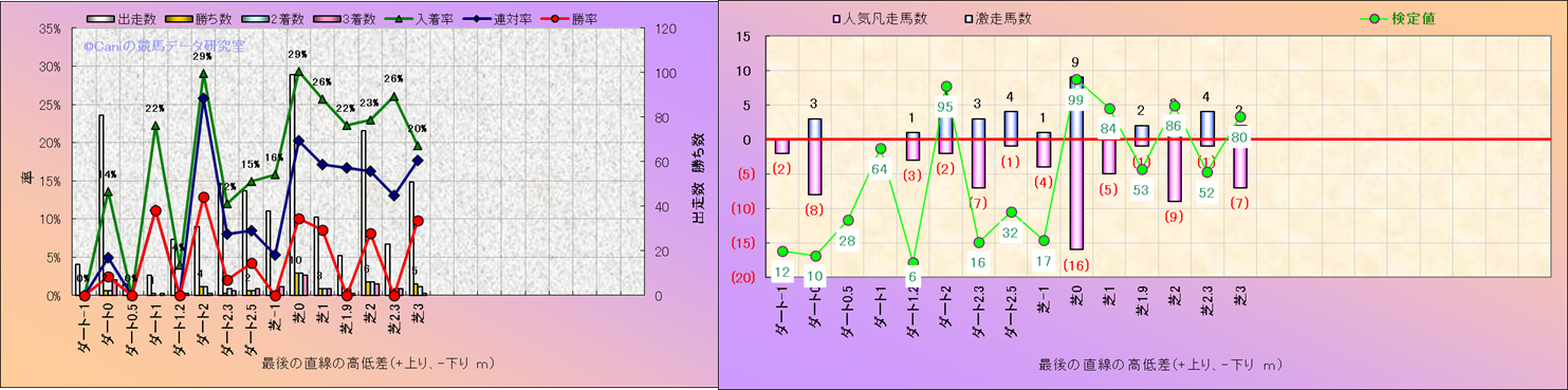 コース、最後の直線の高低差別解析(平地)-近3年- |