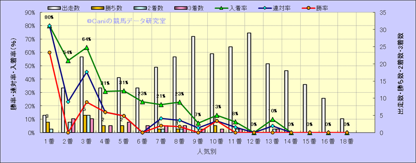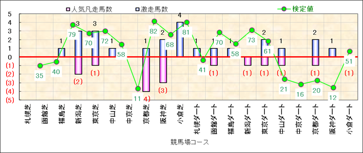 人気凡走馬:1-3番人気で着外、激走馬:5-18番人気で入着 |