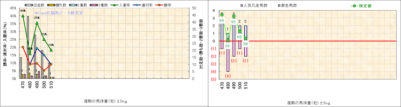 牡産駒の体重別成績-近3年- |