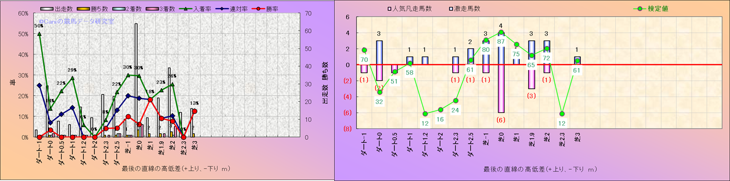 コース、最後の直線の高低差別解析(平地)-近3年- |