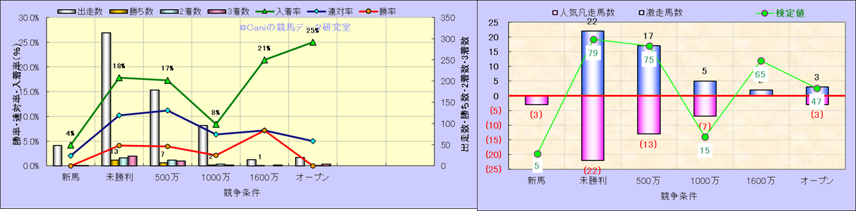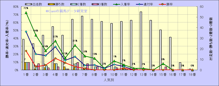 人気凡走馬:1-3番人気で着外、激走馬:5-18番人気で入着 |