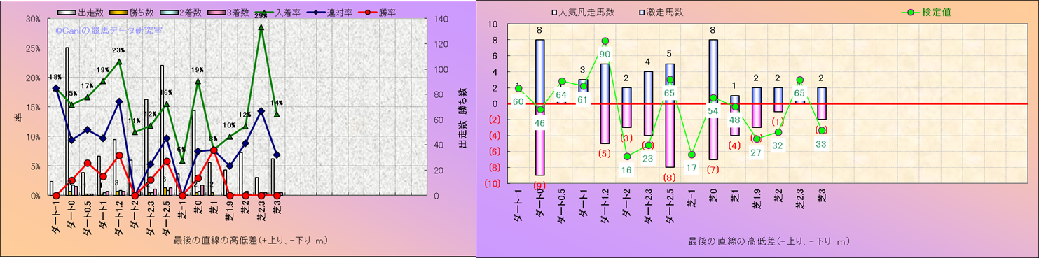 コース、最後の直線の高低差別解析(平地)-近3年- |