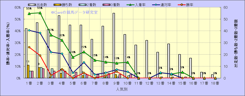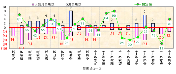 人気凡走馬:1-3番人気で着外、激走馬:5-18番人気で入着 |