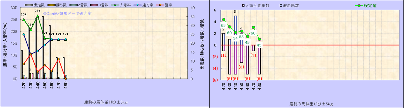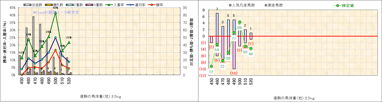 牡産駒の体重別成績-近3年- |