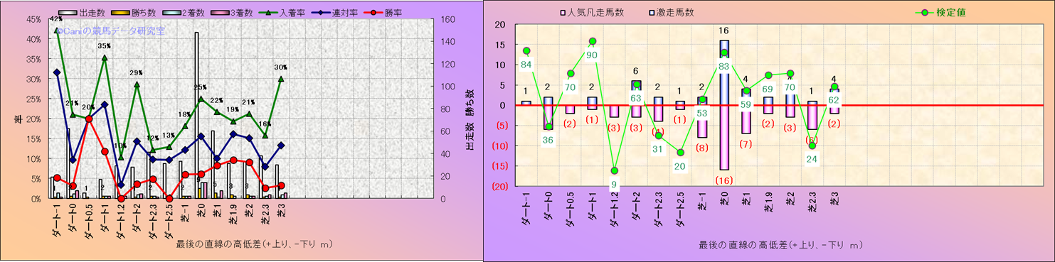 コース、最後の直線の高低差別解析(平地)-近3年- |