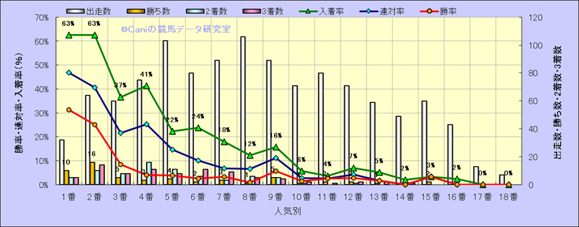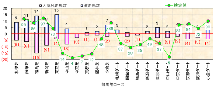 人気凡走馬:1-3番人気で着外、激走馬:5-18番人気で入着 |
