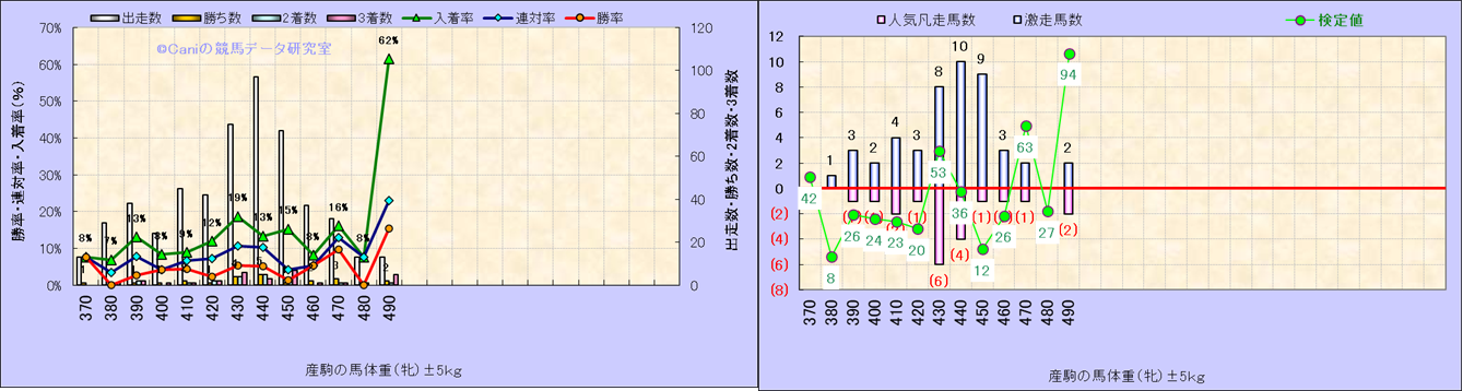 牡産駒の体重別成績-近3年- |