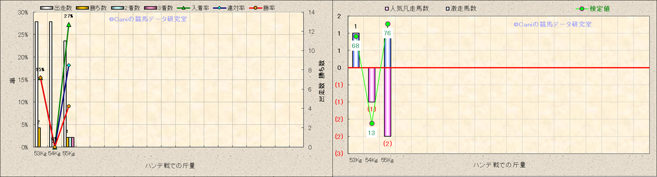 ハンデ戦での斤量別解析 |