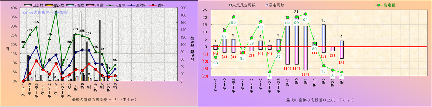 コース、最後の直線の高低差別解析(平地)-近3年- |
