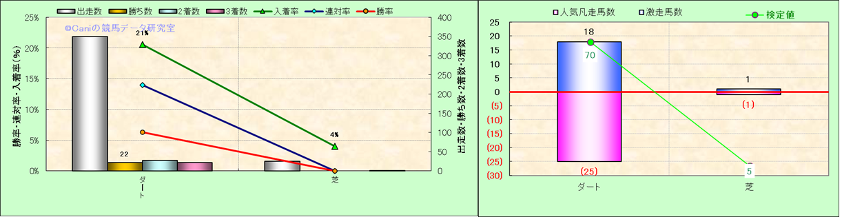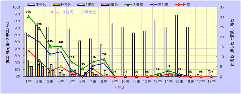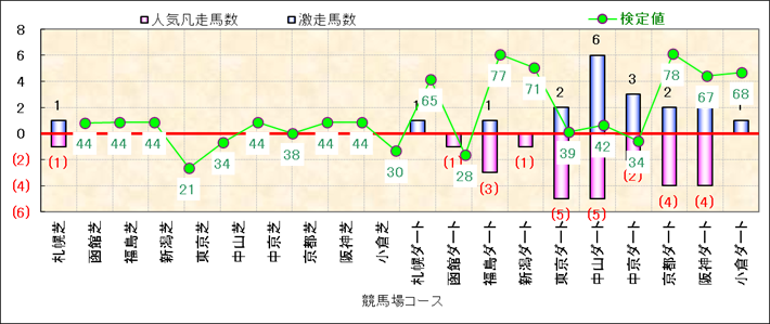 人気凡走馬:1-3番人気で着外、激走馬:5-18番人気で入着 |