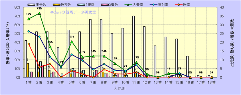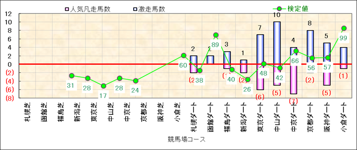 人気凡走馬:1-3番人気で着外、激走馬:5-18番人気で入着 |