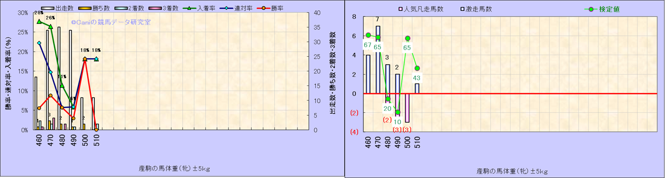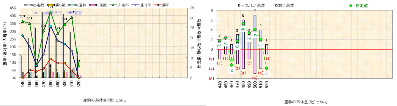 牡産駒の体重別成績-近3年- |