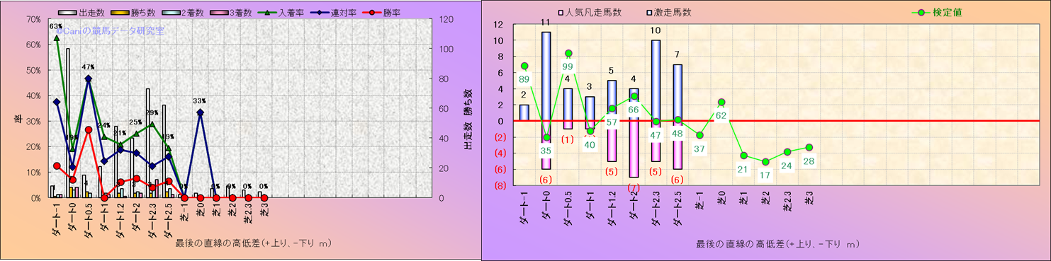 コース、最後の直線の高低差別解析(平地)-近3年- |