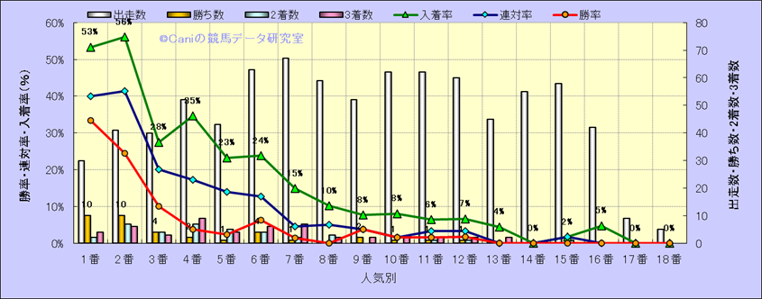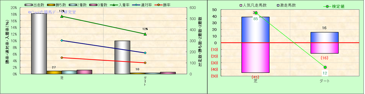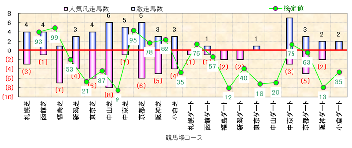 人気凡走馬:1-3番人気で着外、激走馬:5-18番人気で入着 |