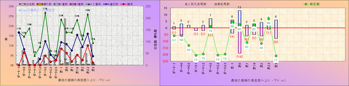 コース、最後の直線の高低差別解析(平地)-近3年- |