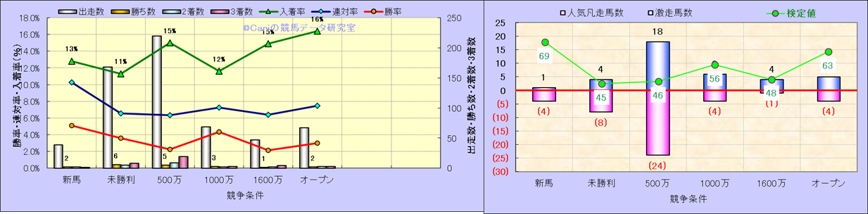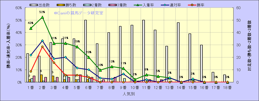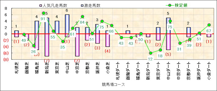 人気凡走馬:1-3番人気で着外、激走馬:5-18番人気で入着 |