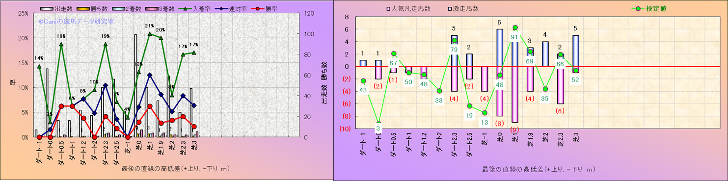 コース、最後の直線の高低差別解析(平地)-近3年- |