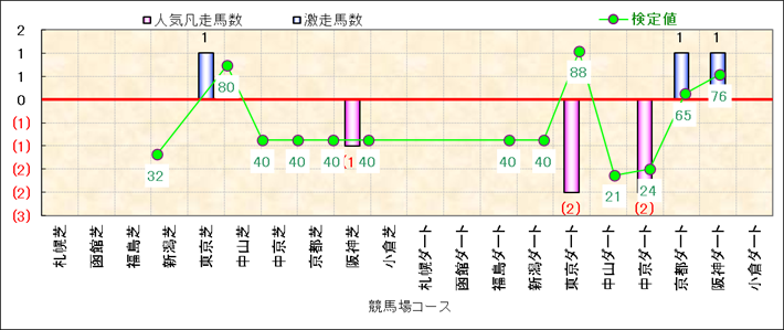 人気凡走馬:1-3番人気で着外、激走馬:5-18番人気で入着 |