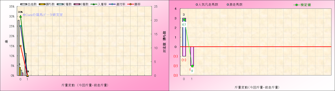 ハンデ戦での斤量別解析 |