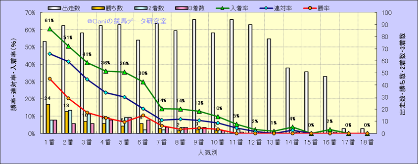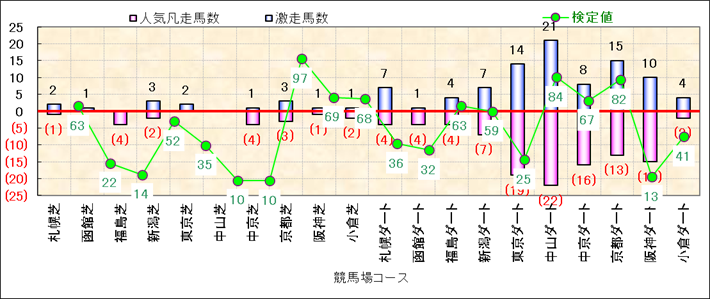 人気凡走馬:1-3番人気で着外、激走馬:5-18番人気で入着 |