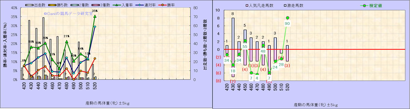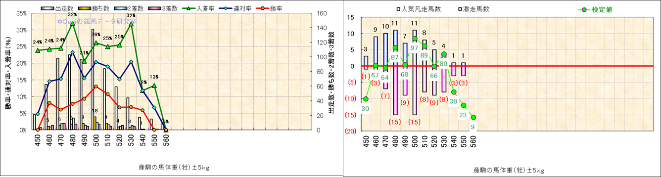 牡産駒の体重別成績-近3年- |