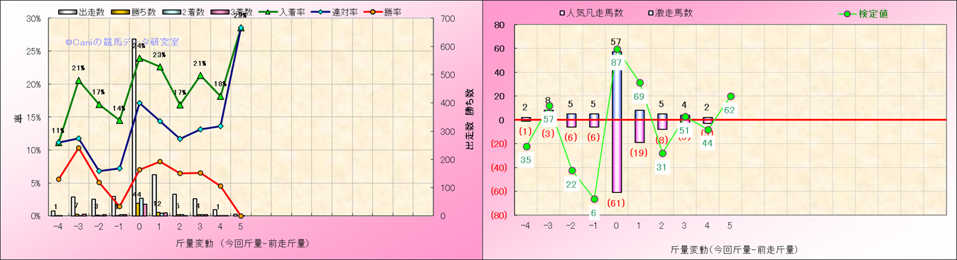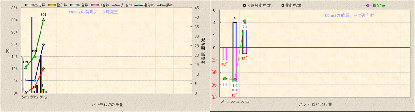 ハンデ戦での斤量別解析 |