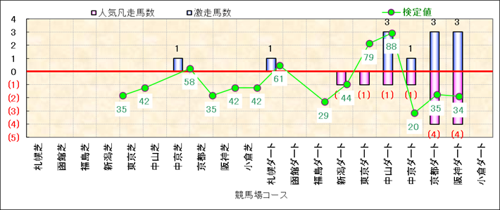 人気凡走馬:1-3番人気で着外、激走馬:5-18番人気で入着 |