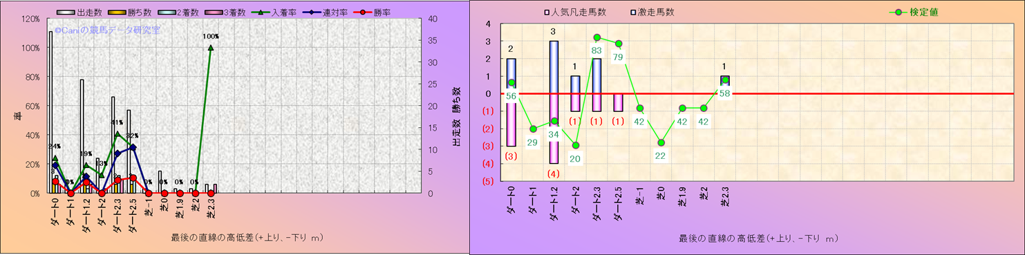 コース、最後の直線の高低差別解析(平地)-近3年- |