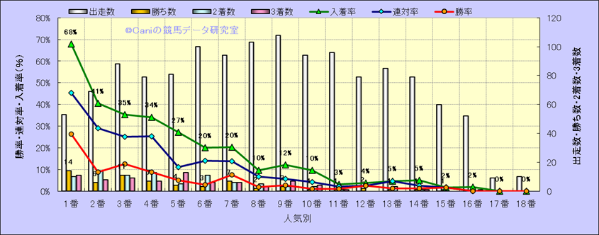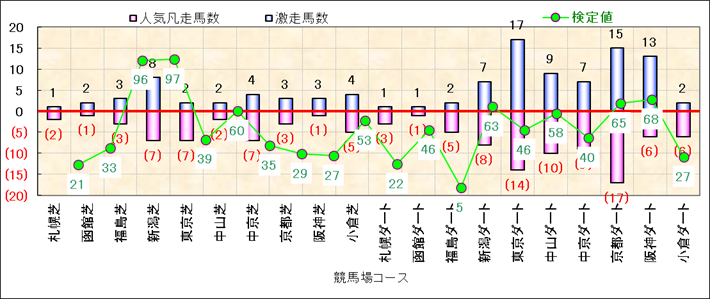 人気凡走馬:1-3番人気で着外、激走馬:5-18番人気で入着 |