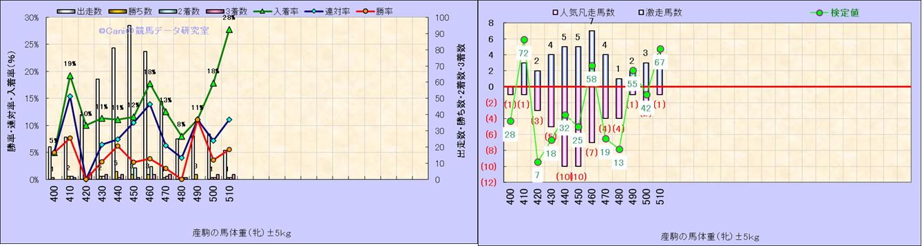 牡産駒の体重別成績-近3年- |