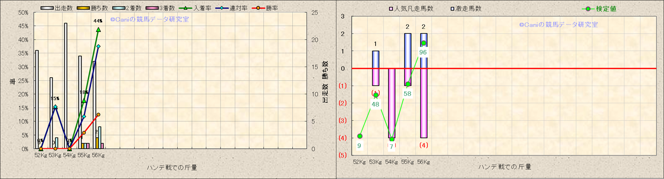 ハンデ戦での斤量別解析 |