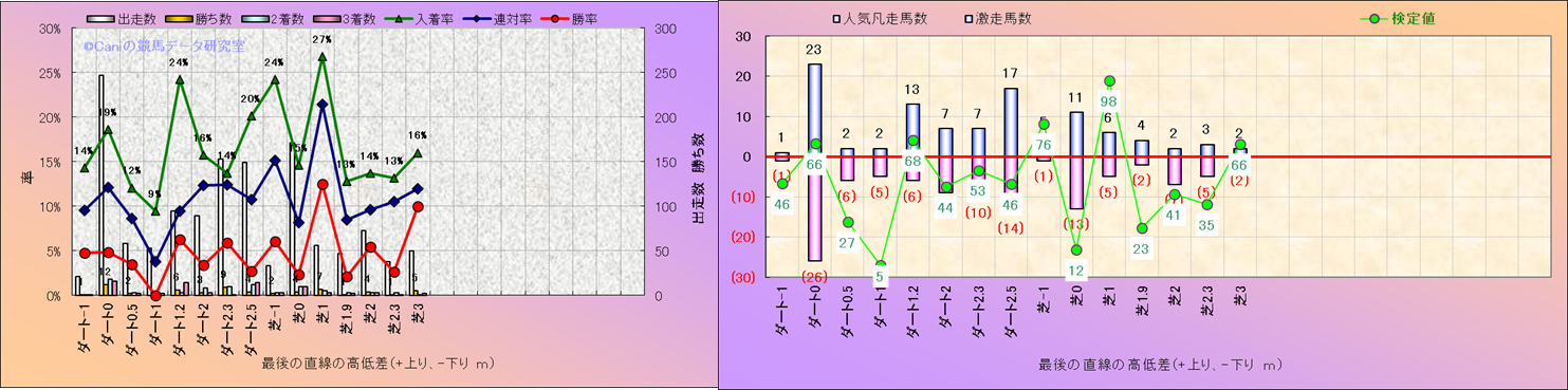 コース、最後の直線の高低差別解析(平地)-近3年- |