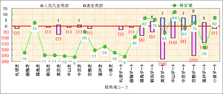 人気凡走馬:1-3番人気で着外、激走馬:5-18番人気で入着 |
