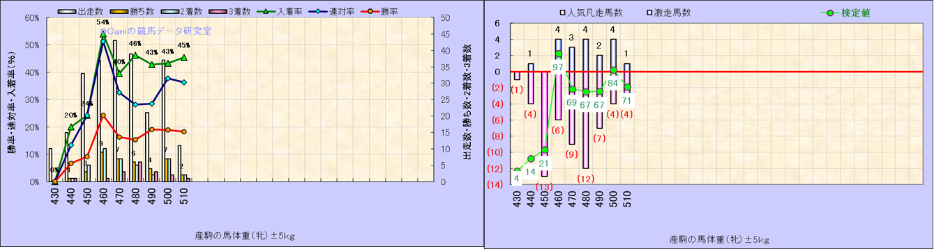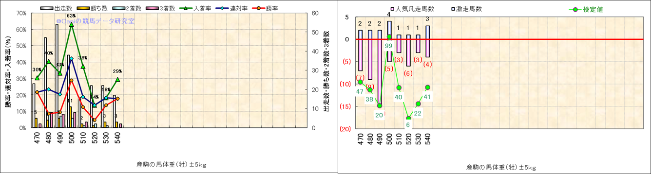 牡産駒の体重別成績-近3年- |