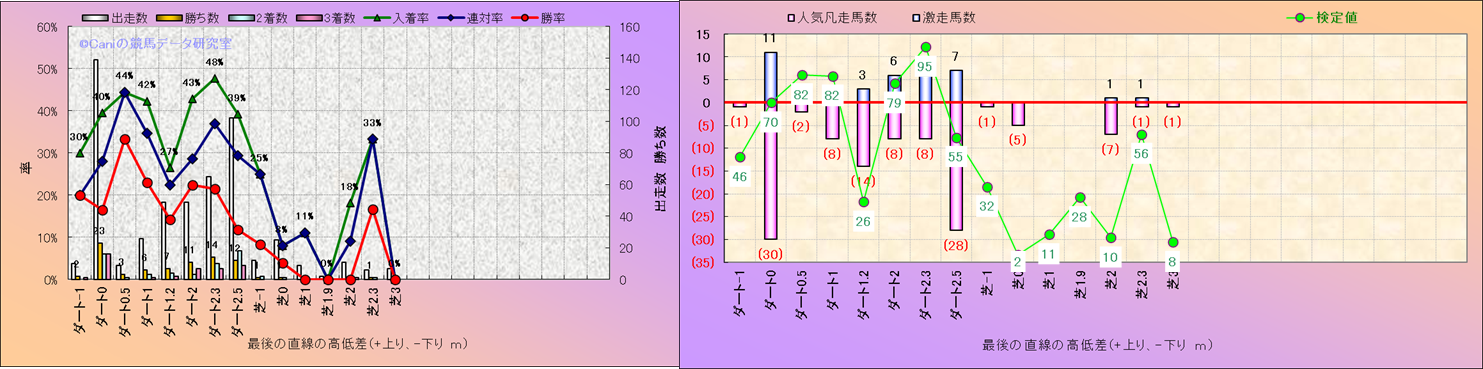 コース、最後の直線の高低差別解析(平地)-近3年- |