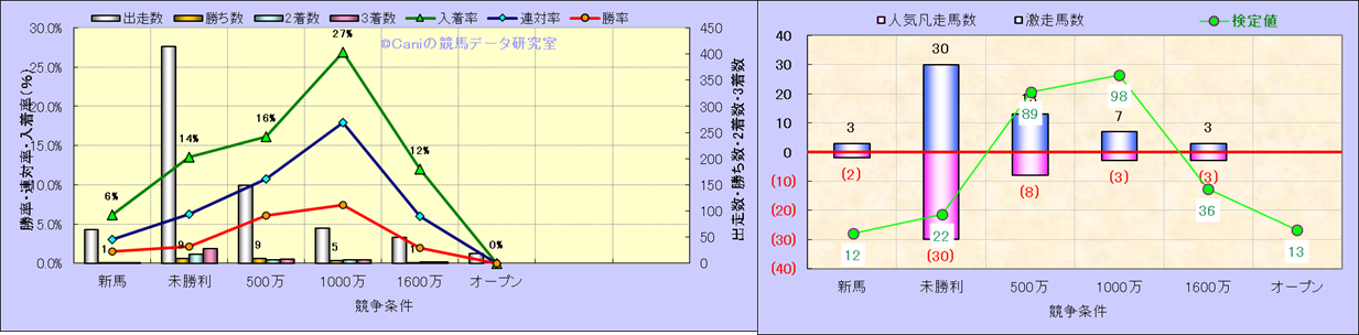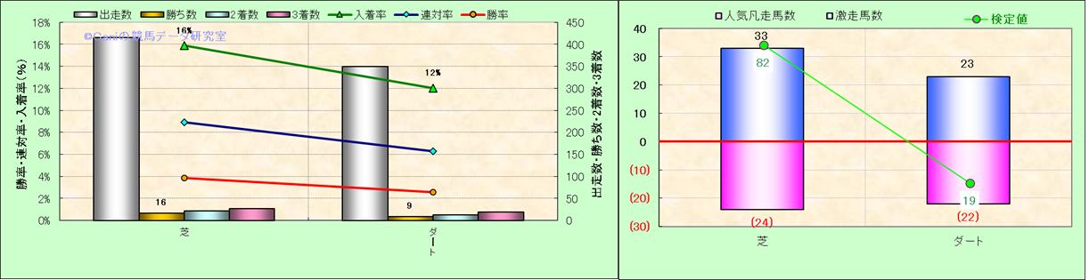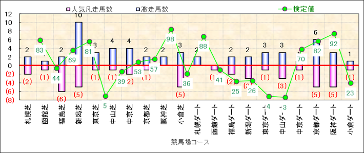人気凡走馬:1-3番人気で着外、激走馬:5-18番人気で入着 |