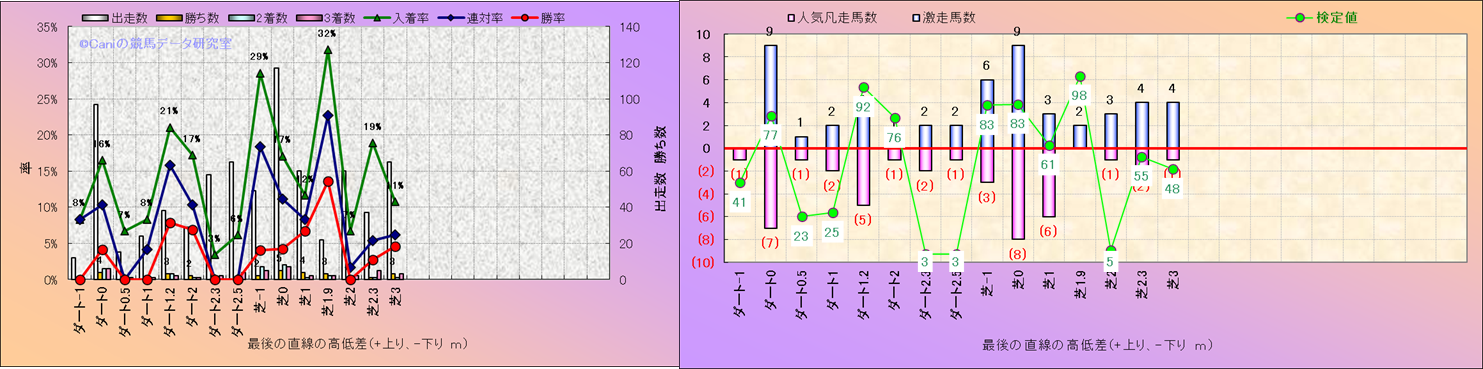 コース、最後の直線の高低差別解析(平地)-近3年- |