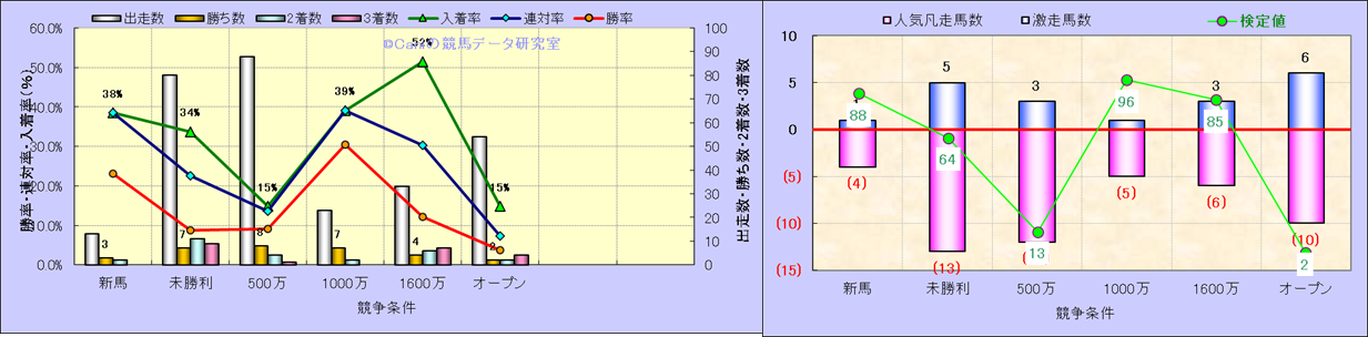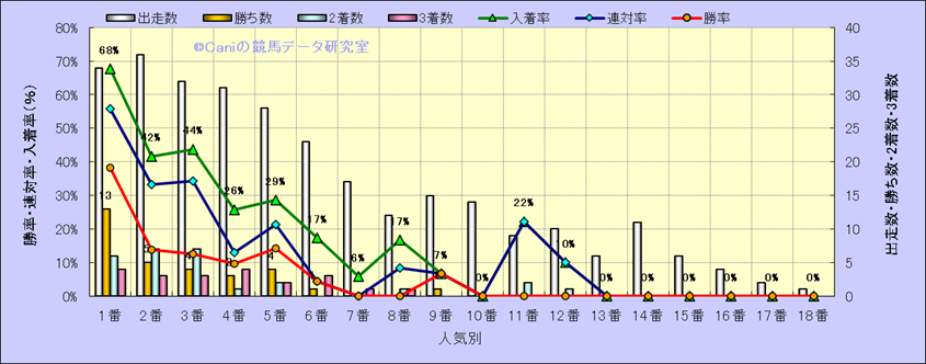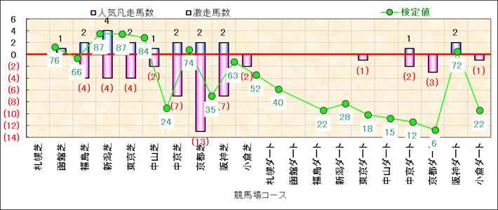 人気凡走馬:1-3番人気で着外、激走馬:5-18番人気で入着 |