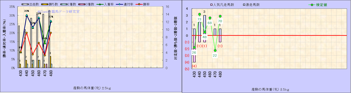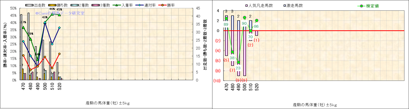 牡産駒の体重別成績-近3年- |