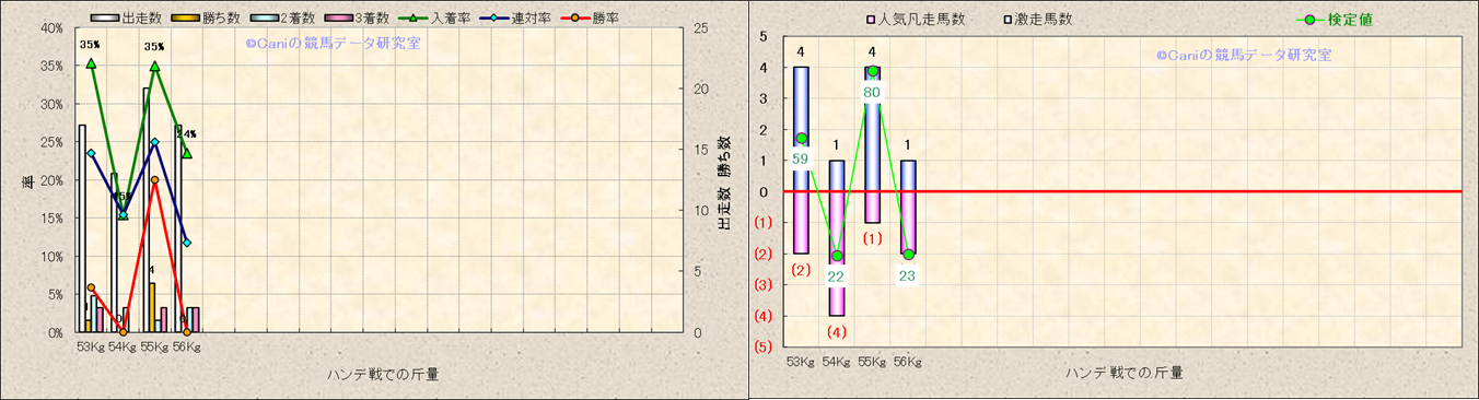 ハンデ戦での斤量別解析 |