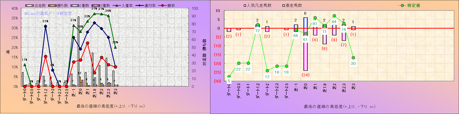 コース、最後の直線の高低差別解析(平地)-近3年- |