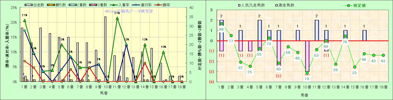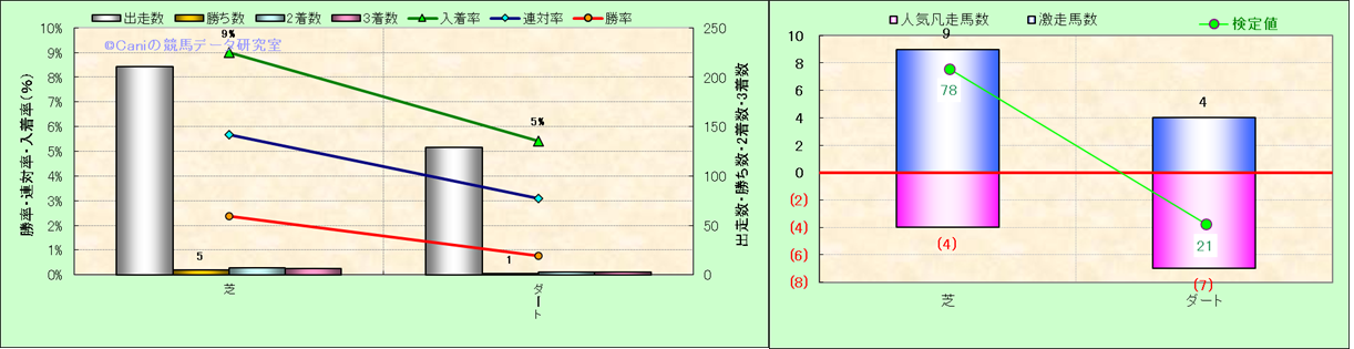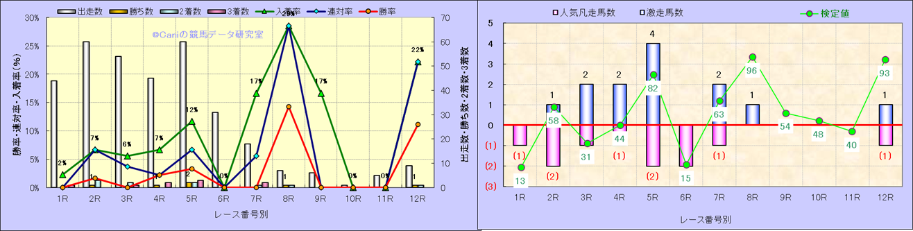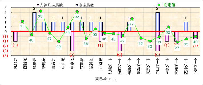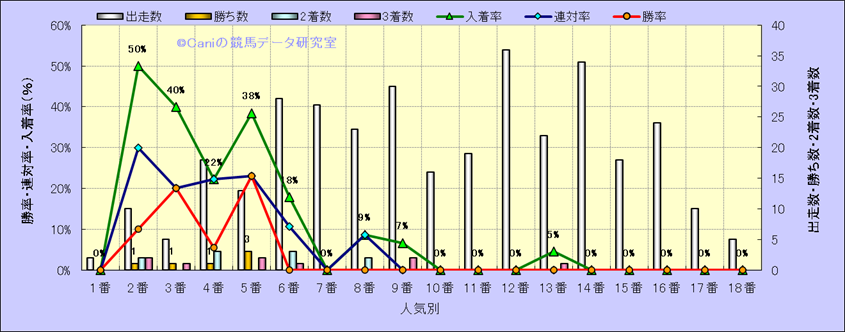 人気凡走馬:1-3番人気で着外、激走馬:5-18番人気で入着 |