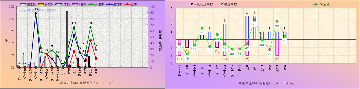 コース、最後の直線の高低差別解析(平地)-近3年- |