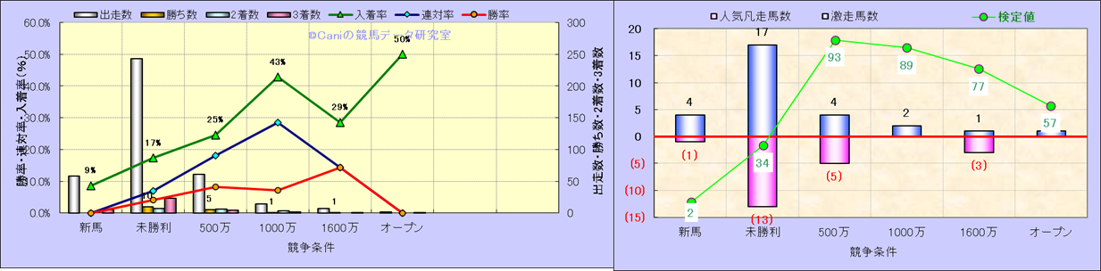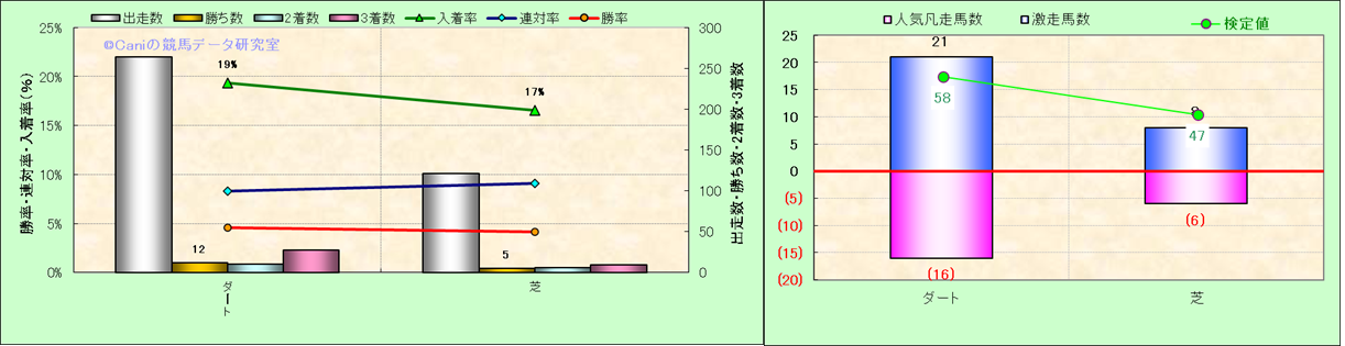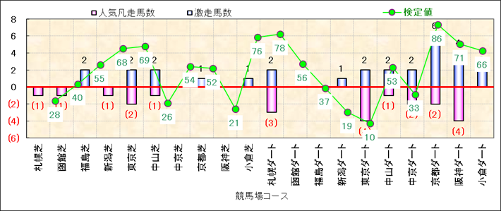 人気凡走馬:1-3番人気で着外、激走馬:5-18番人気で入着 |