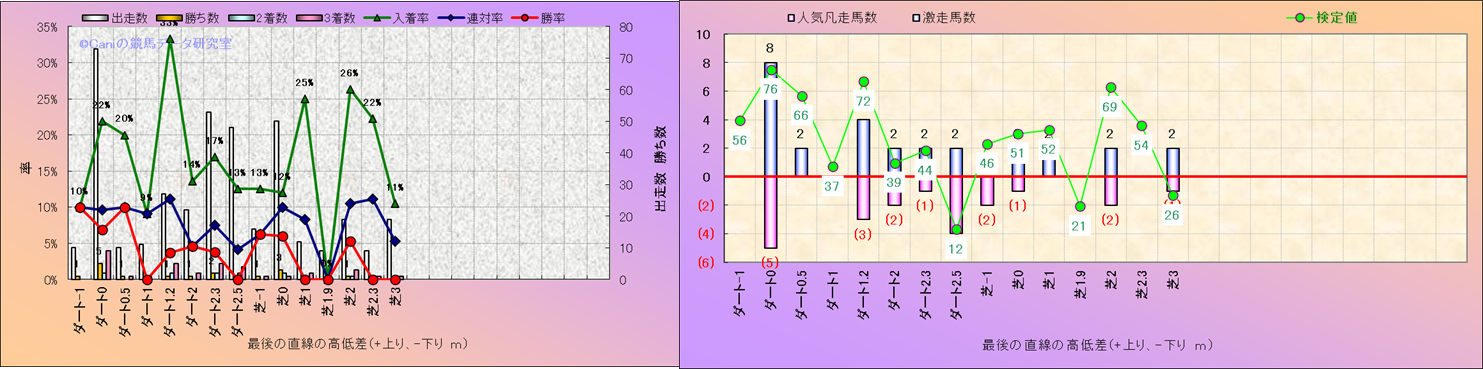 コース、最後の直線の高低差別解析(平地)-近3年- |