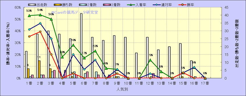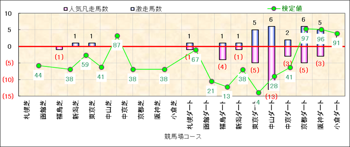 人気凡走馬:1-3番人気で着外、激走馬:5-18番人気で入着 |