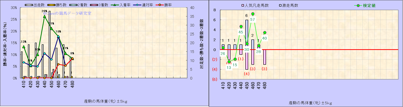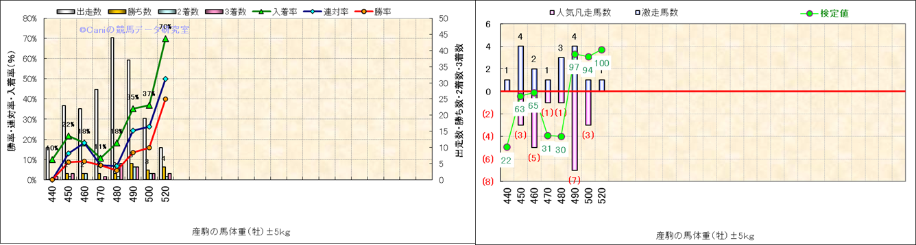 牡産駒の体重別成績-近3年- |